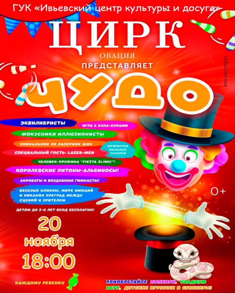 20 ноября в 18:00 приглашаем вас в Ивьевский центр культуры и досуга на цирковое шоу «ОВАЦИЯ».
